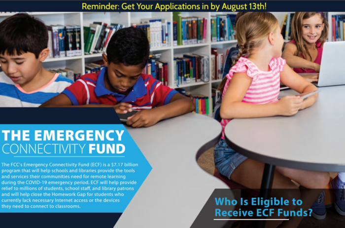 Congress authorized the Emergency Connectivity Fund as part of the American Rescue Plan Act of 2021. Through the Emergency Connectivity Fund, the FCC will award $7.17 billion to help schools and libraries purchase connected devices and broadband internet connections to facilitate off-campus remote learning. The initial application window will close on August 13 at 11:59 p.m. ET.